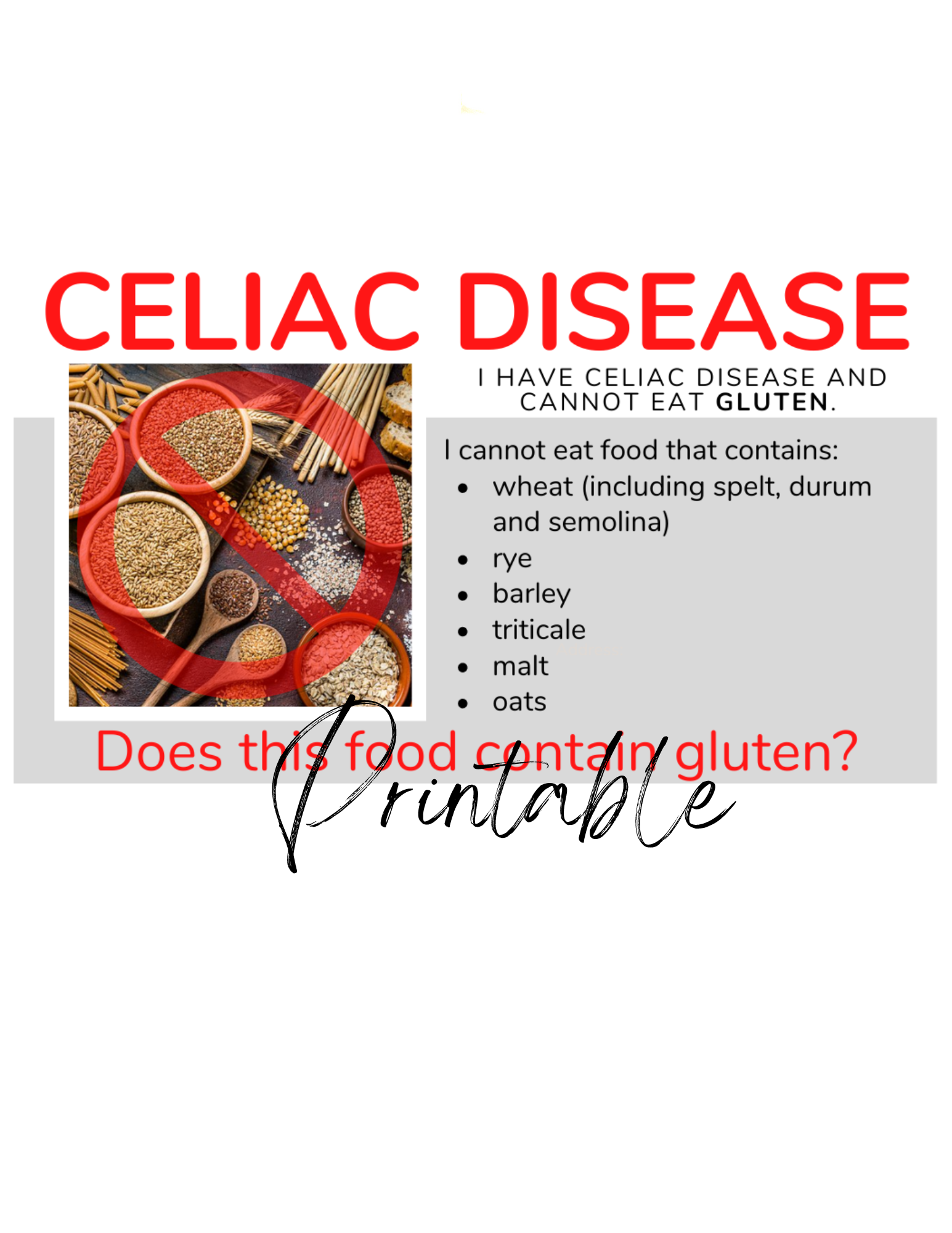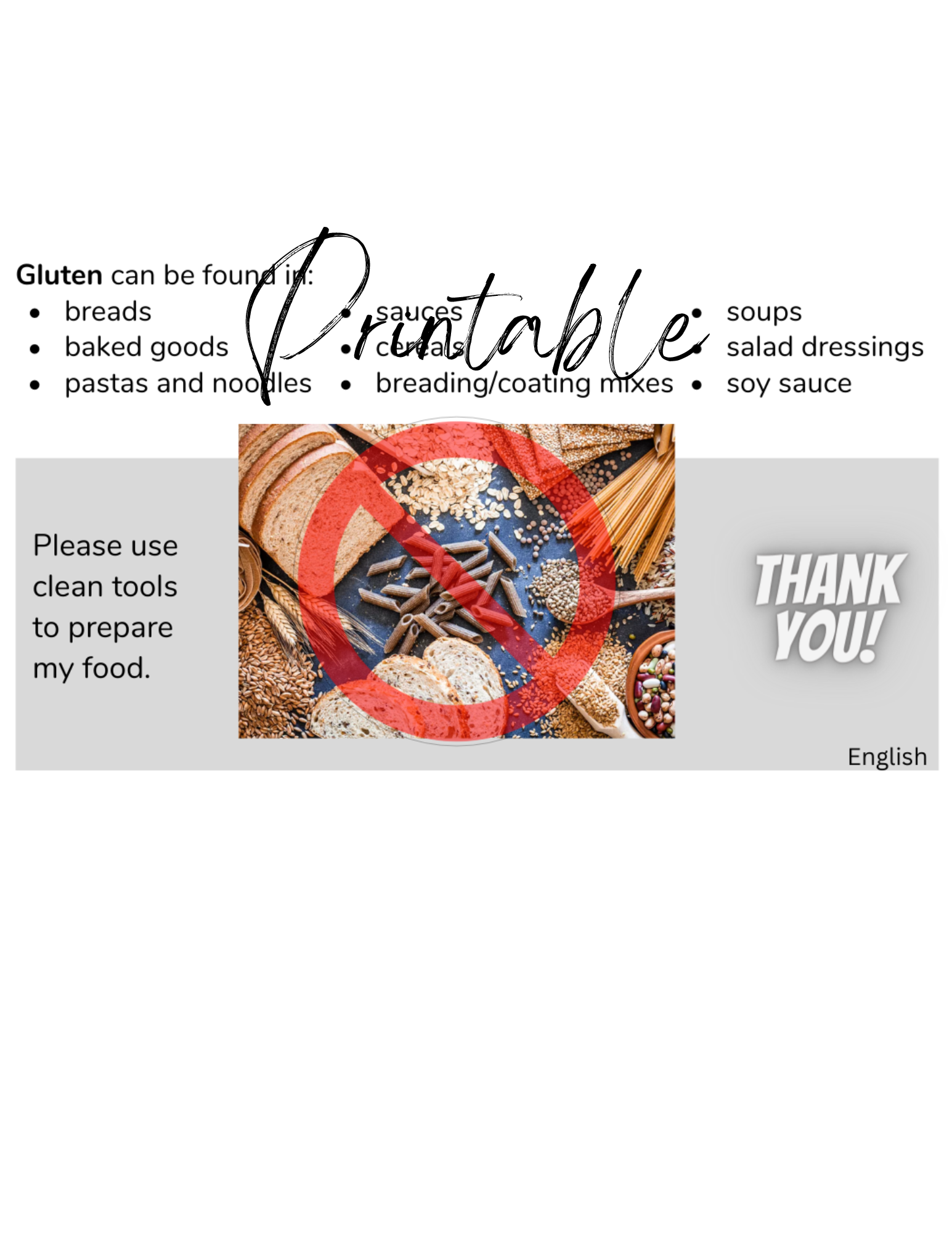 English Celiac Disease Card - Printable Gluten-Free Translation Card