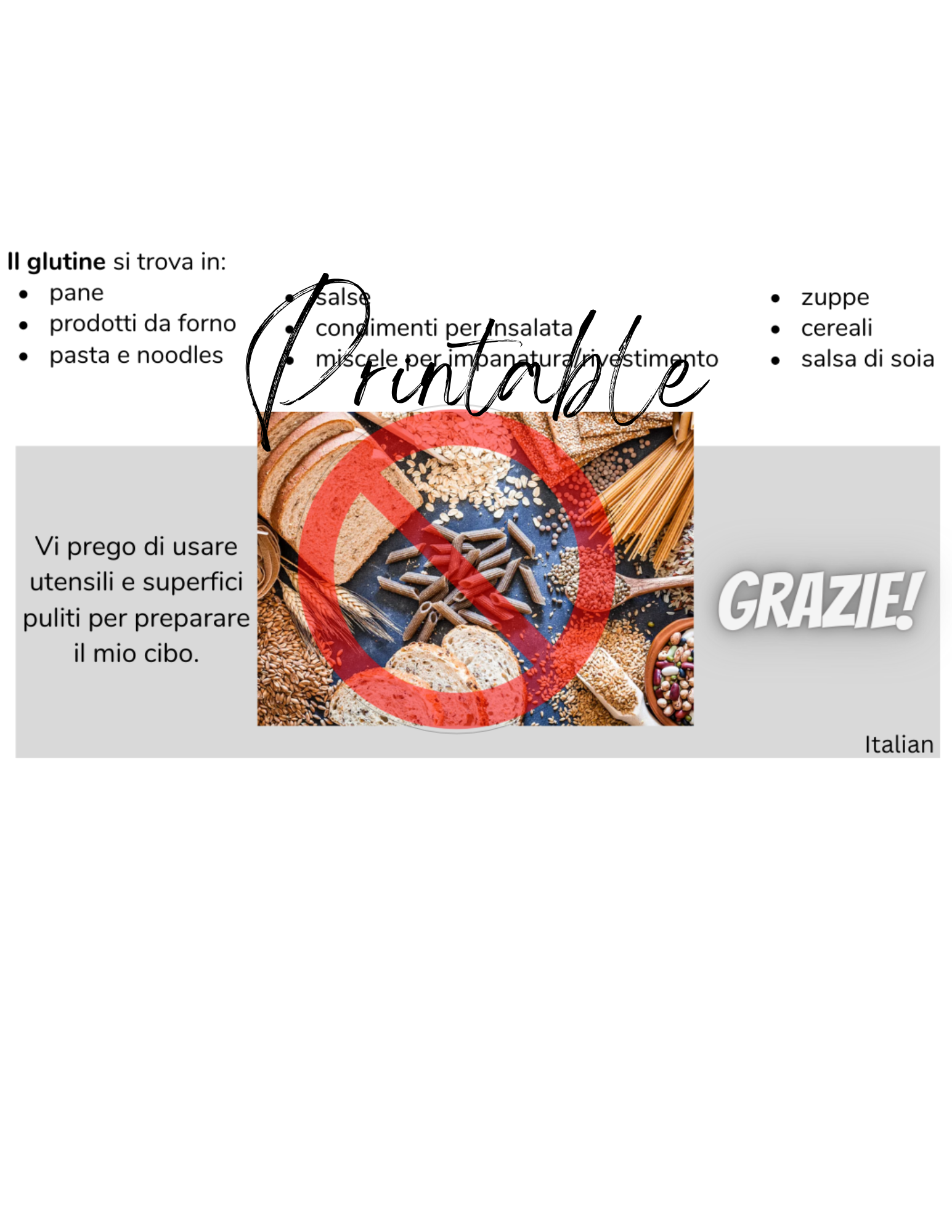 Italian Celiac Disease Card - Printable Gluten-Free Translation Card