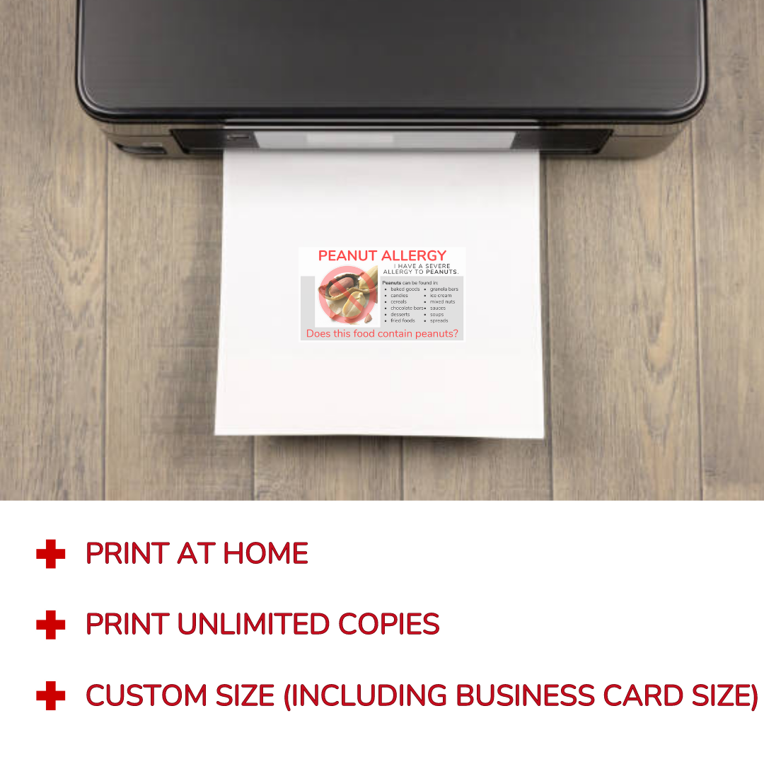 You can use your card either printed or digitally. Many customers prefer a printed version for restaurants and travel, but saving the digital PDF to your phone works for quick access.