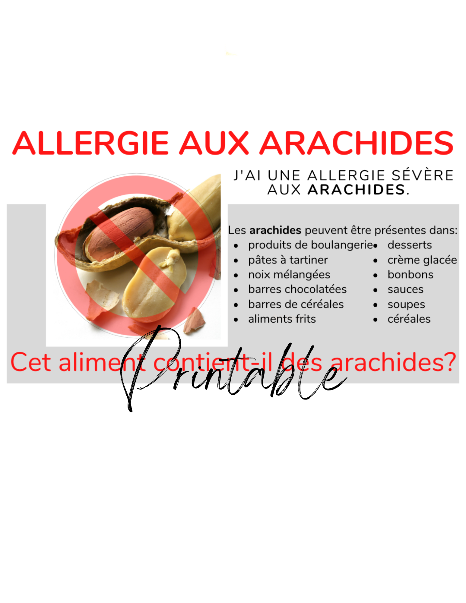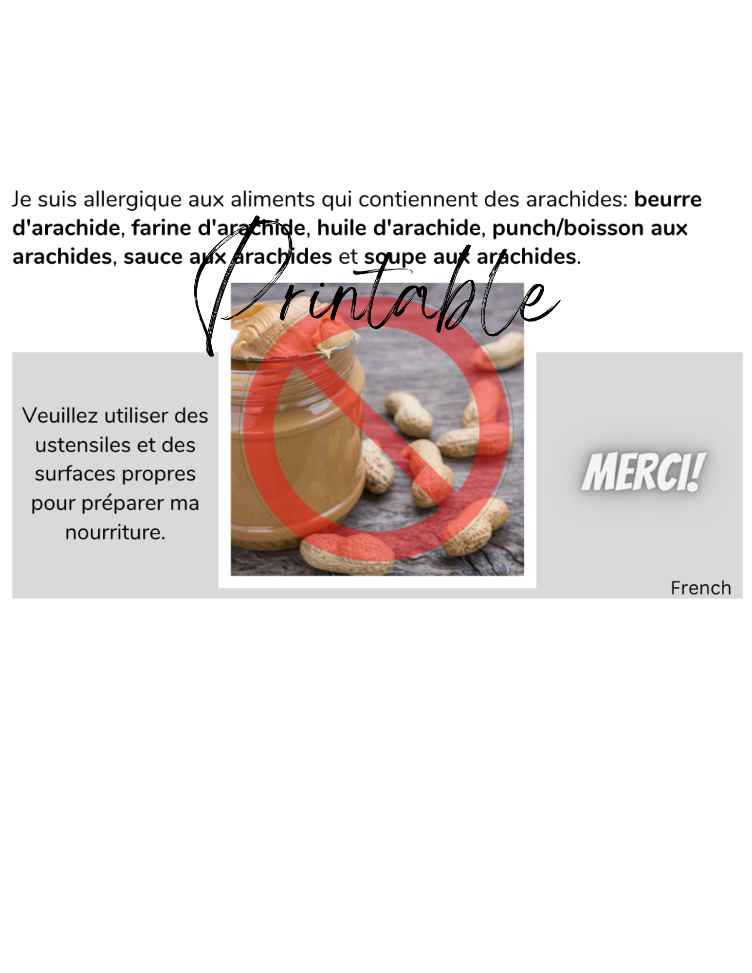 French Peanut Allergy Card - Printable Allergy Translation Card