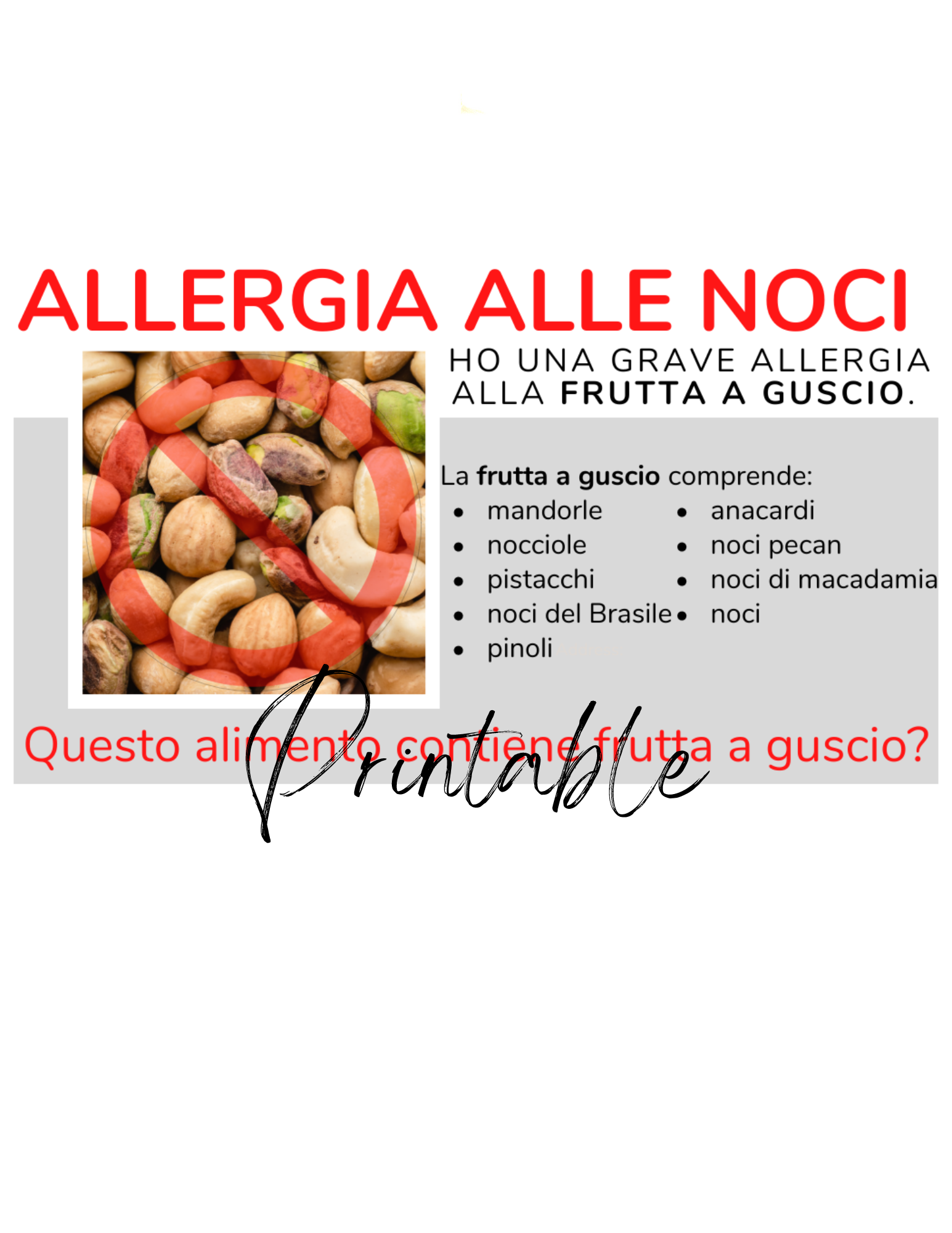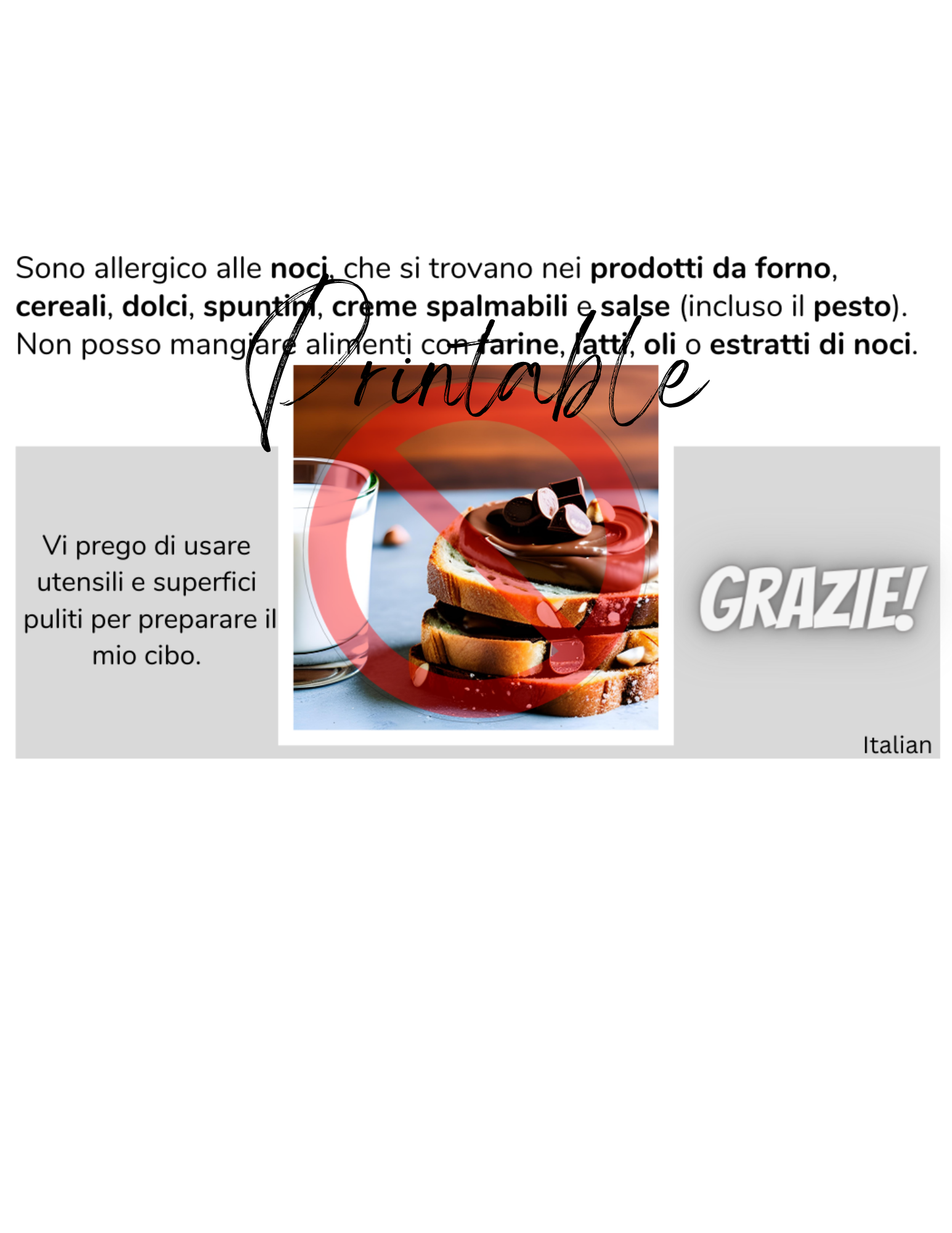 Italian Tree Nut Allergy Card - Printable Allergy Translation Card