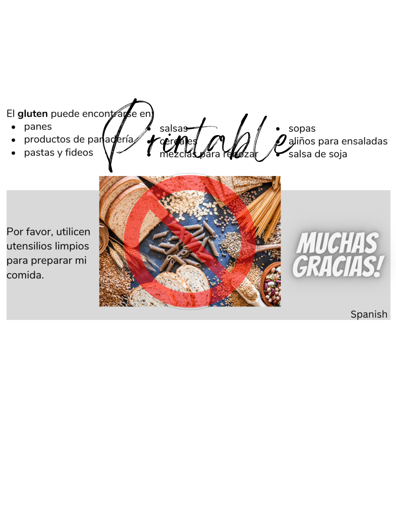 Spanish Celiac Disease Card - Printable Gluten-Free Translation Card