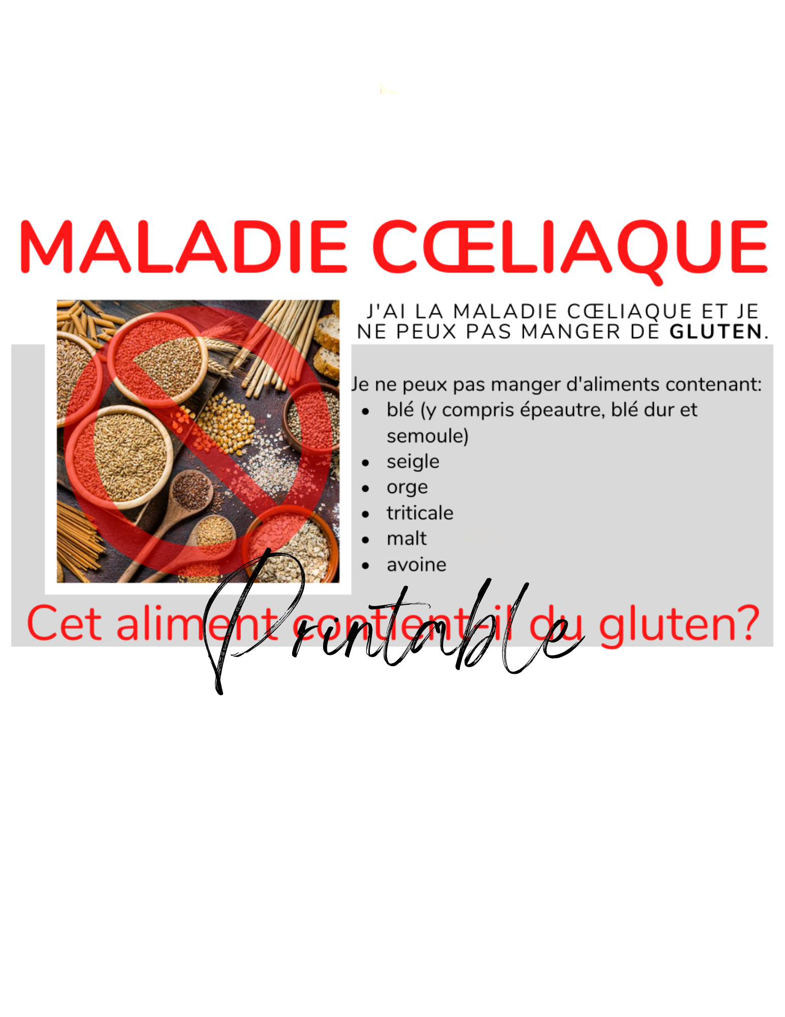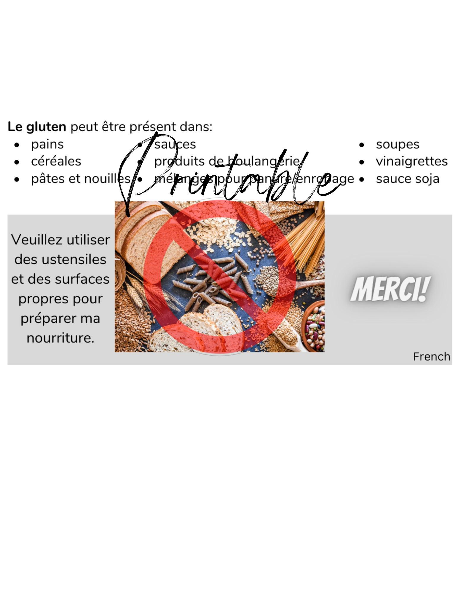 French Celiac Disease Card - Printable Gluten-Free Translation Card