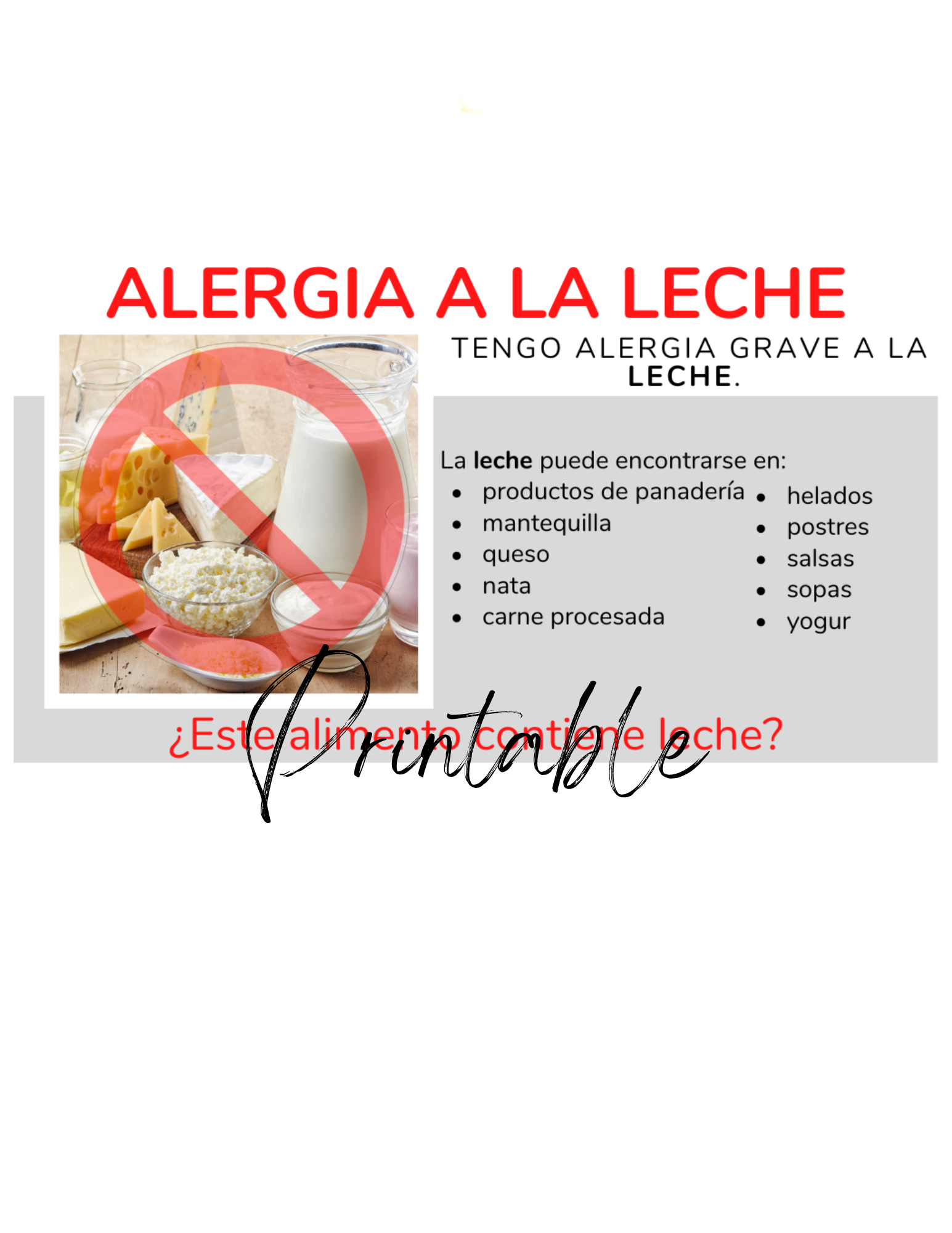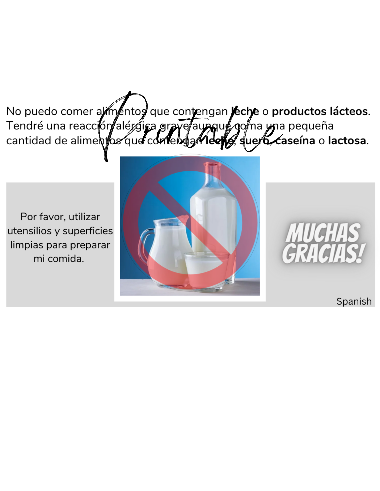 Spanish Milk Allergy Card - Printable Allergy Translation Card