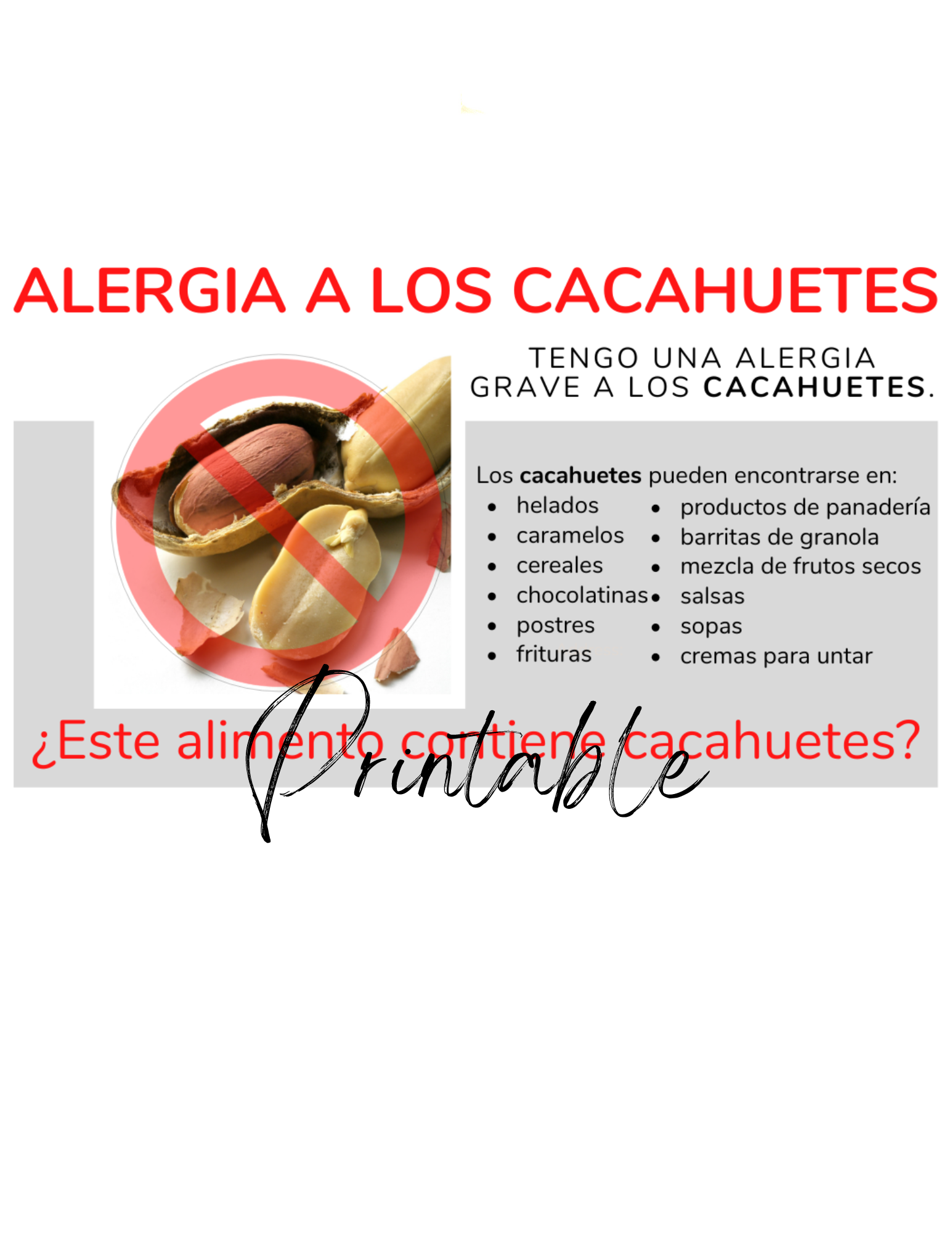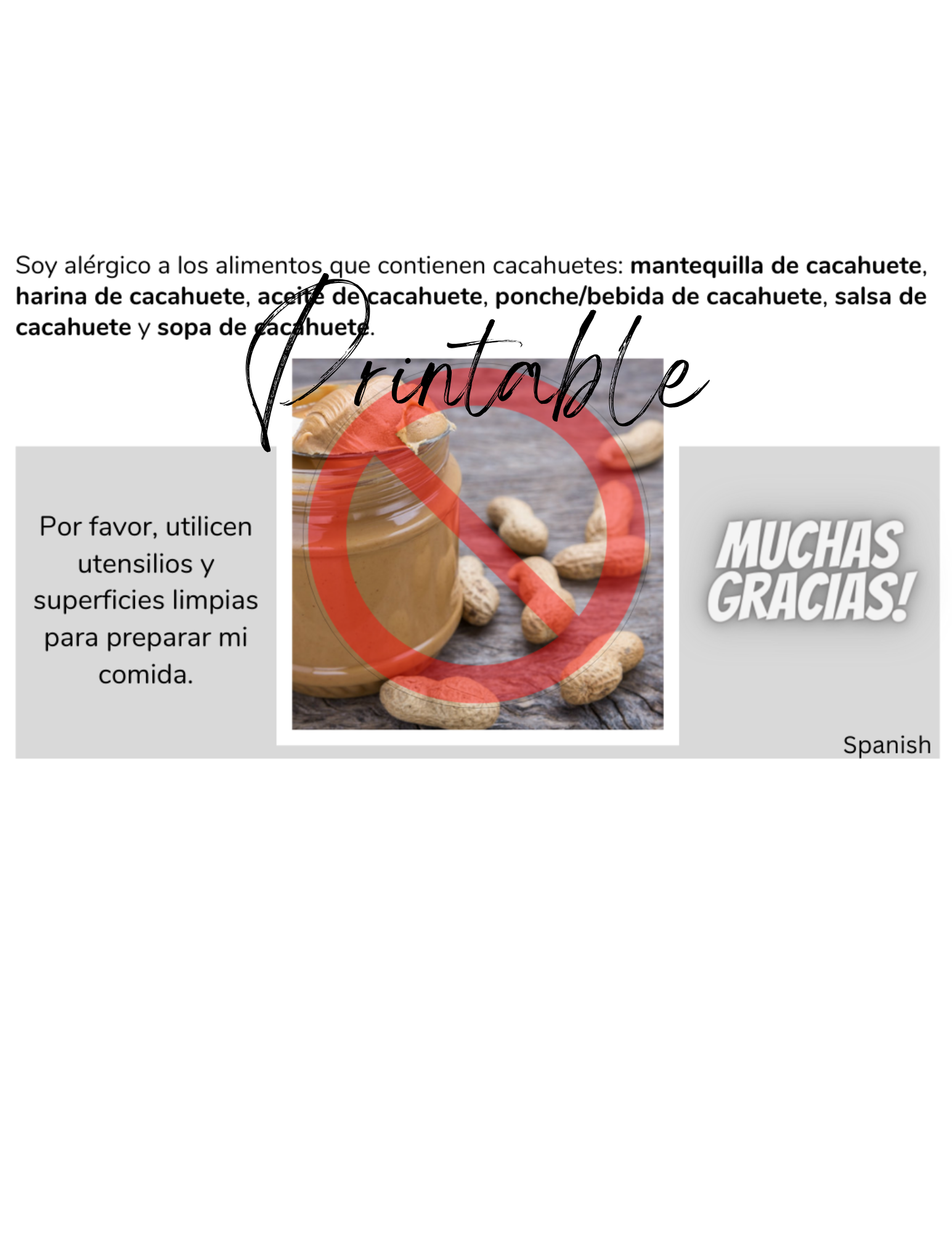 Spanish Peanut Allergy Card - Printable Allergy Translation Card