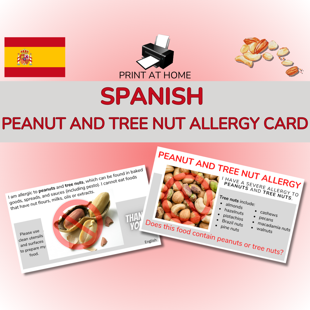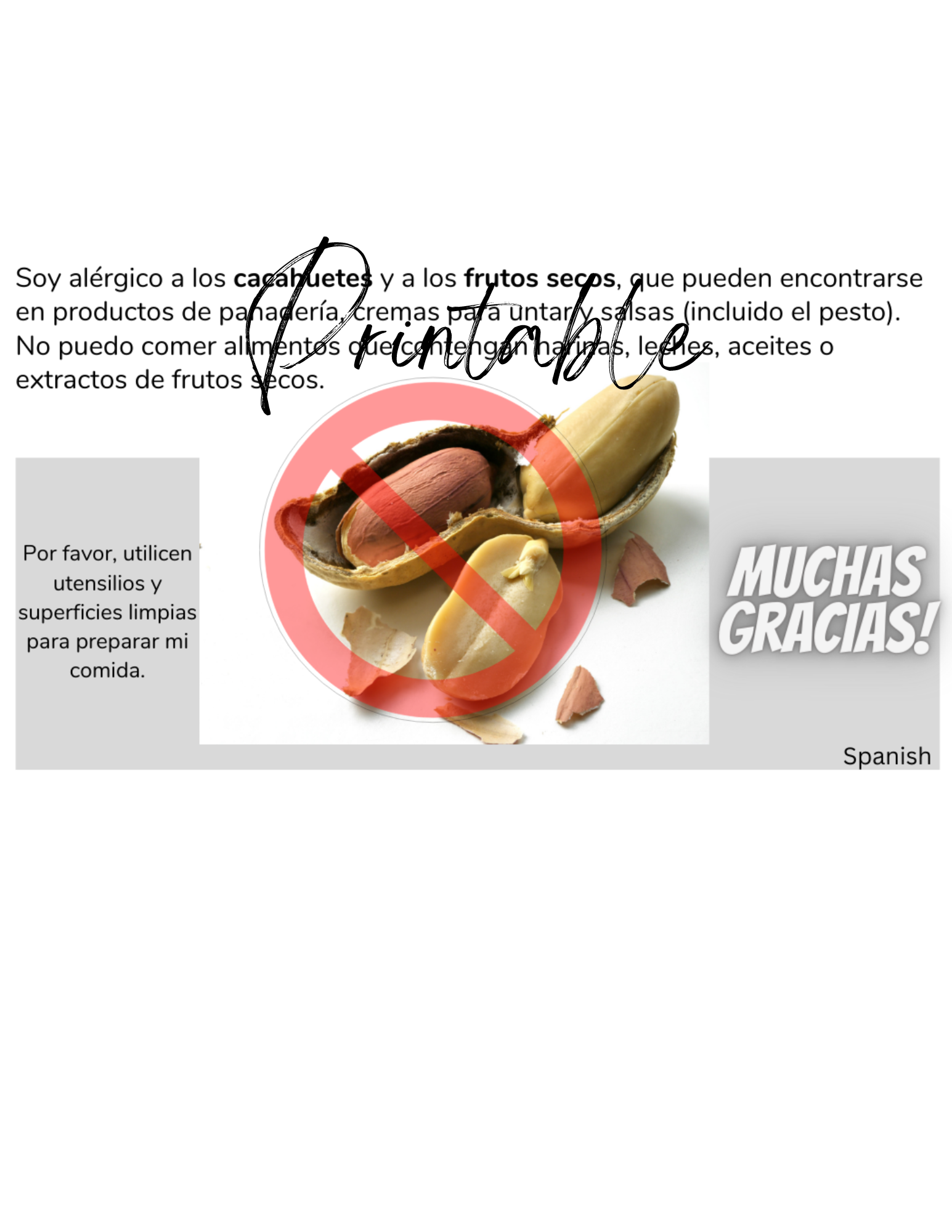 Spanish Peanut & Tree Nut Allergy Card - Printable Allergy Translation Card